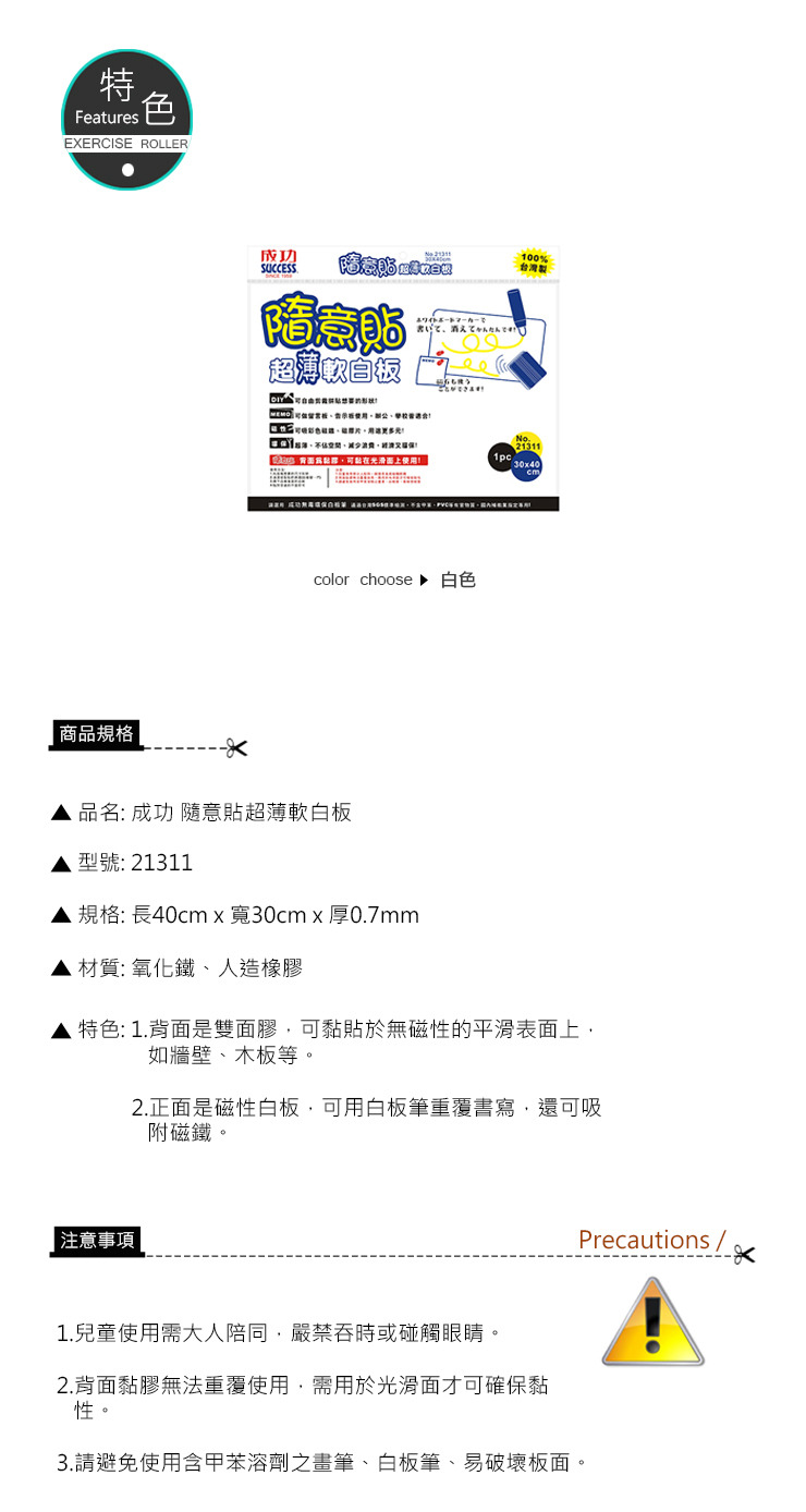 SUCCESS 成功 隨意貼超薄軟白板30x40cm 21311 | Office1 辦公用品網
