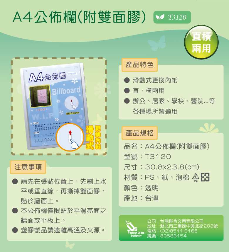 WIP 聯合 A4公佈欄(附雙面膠) T3120