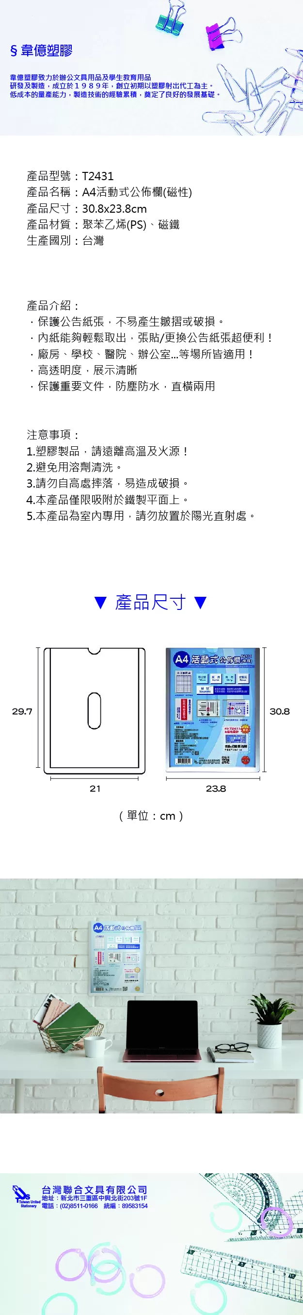 WIP 聯合 A4活動式公佈欄(磁性) T2431 | Office1 辦公用品網