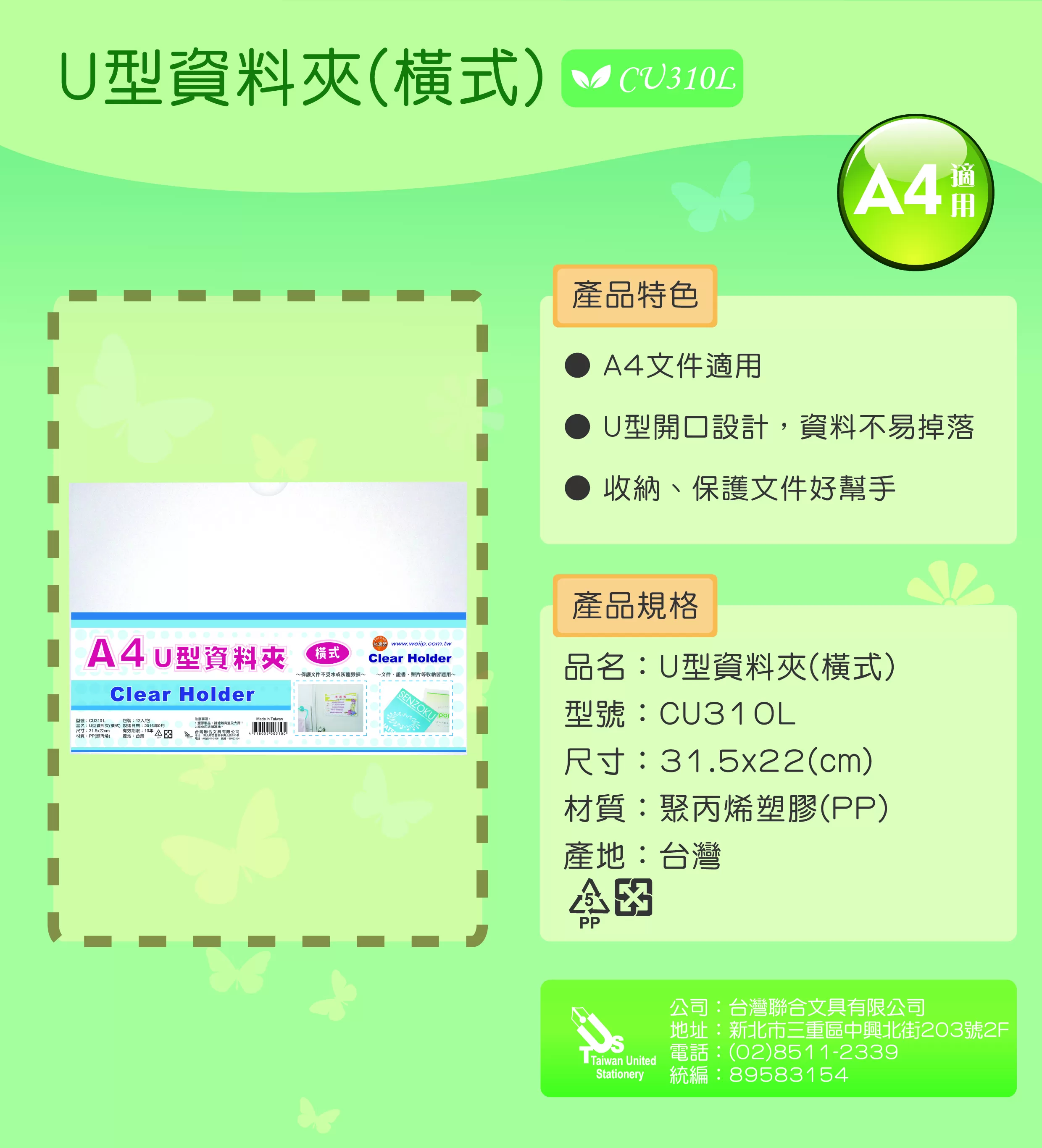 WIP 聯合 U型資料夾(橫式) CU310L