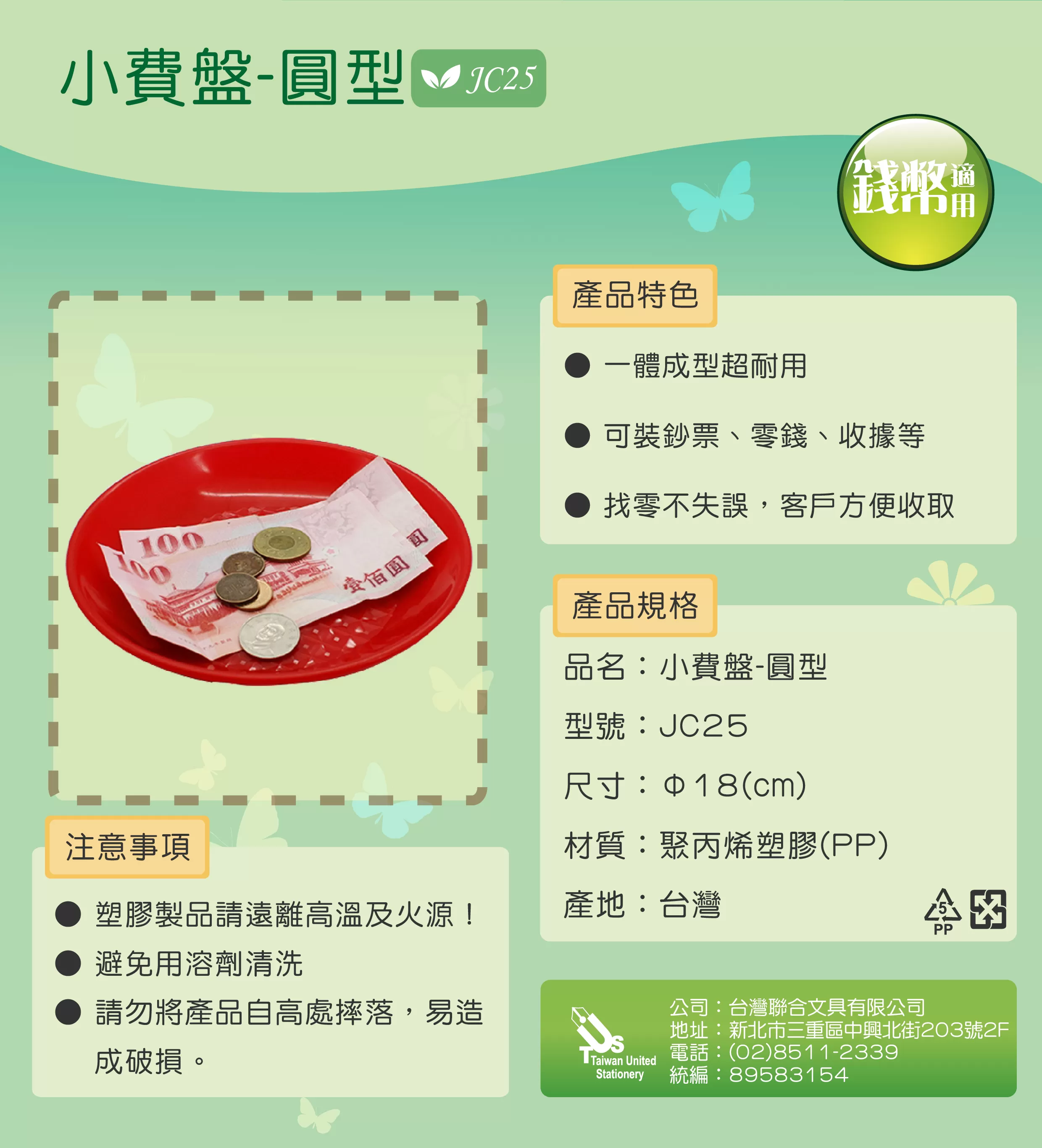 WIP 聯合 小費盤/零錢盤(圓形) JC25 | Office1 辦公用品網